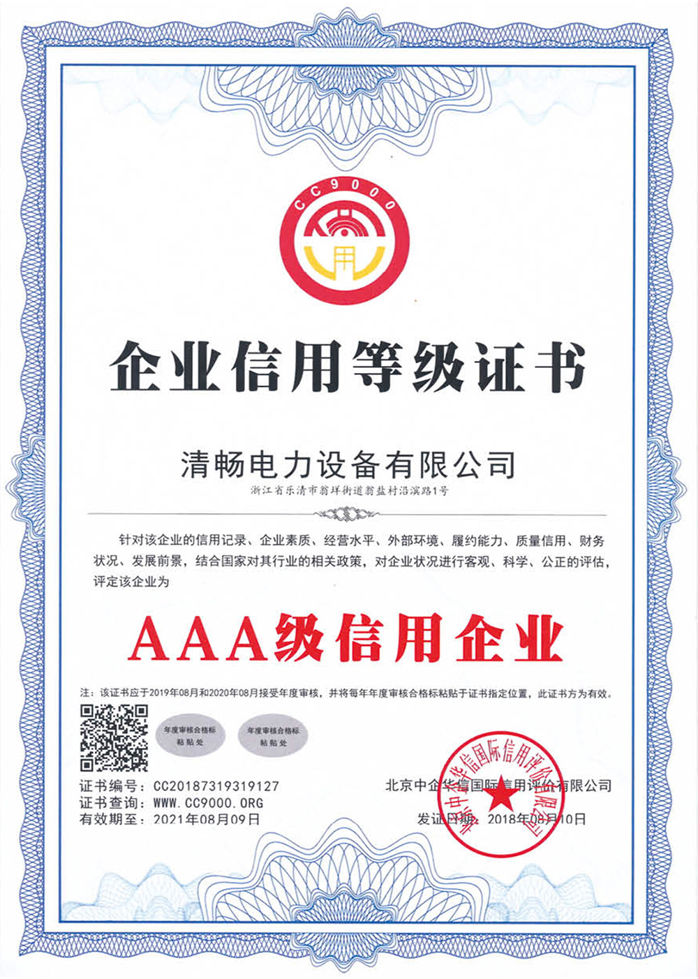 企業信用等級證書