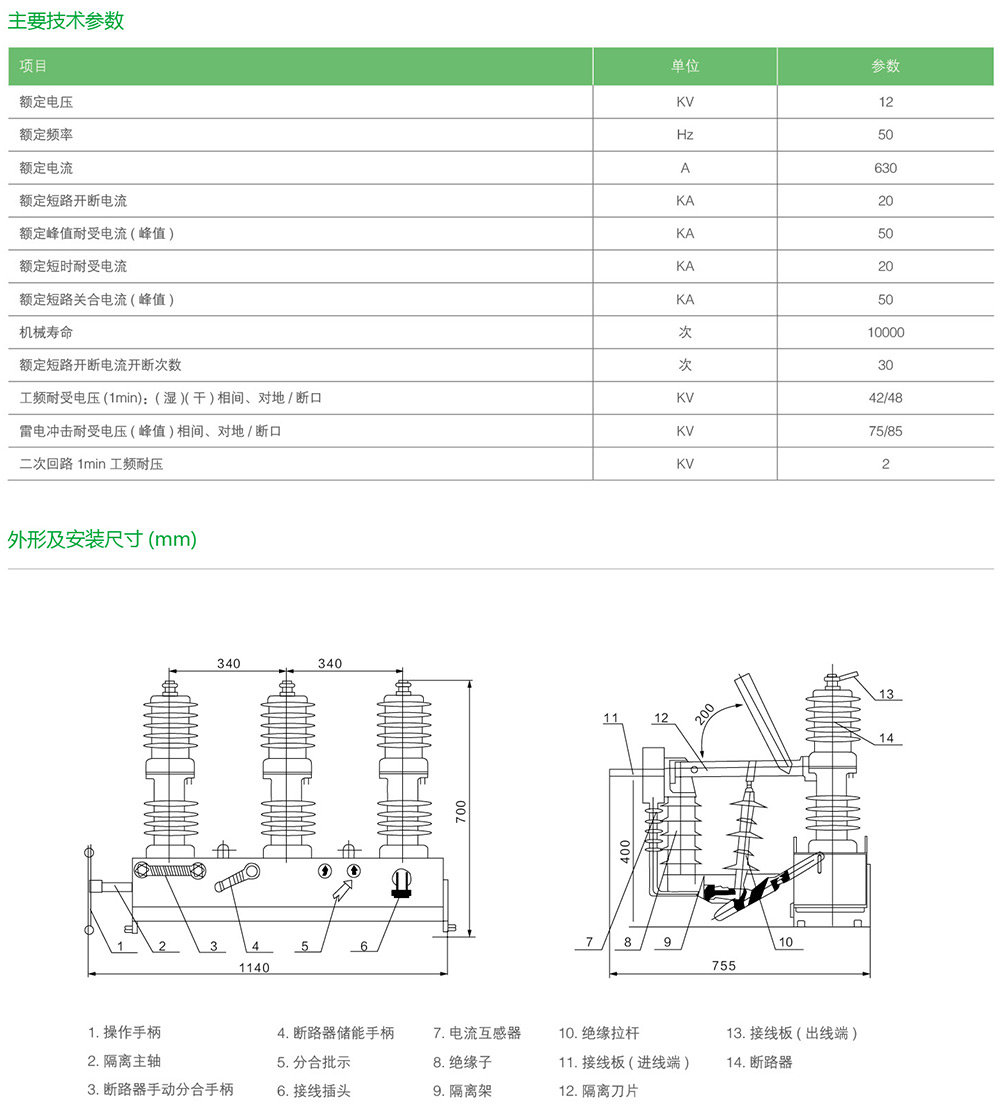 FZW32-12/T630-20戶外高壓隔離真空負荷開關